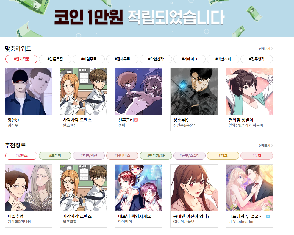 순위를 보거나 혹은 추천 웹툰을 읽어보는게